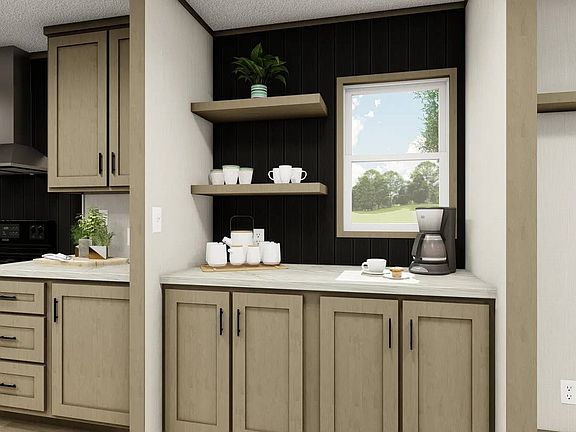 - Features: Open, Laminate Counters