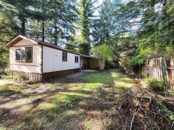Beautiful woodland setting in Smith River Mobile/RV Village! Nestled between the Smith and the North Fork, this peaceful single wide is surrounded by fir trees, wildlife, peace and quiet. Two bedroom, one bath, in a park with $375/mo space rent. It has a covered carport, fenced yard, storage unit, wood stove and electric heat, refrigerator, pure well water, a covered porch, established berries, and fruit trees. Across the street from a store and pub. Close to Smith River falls!