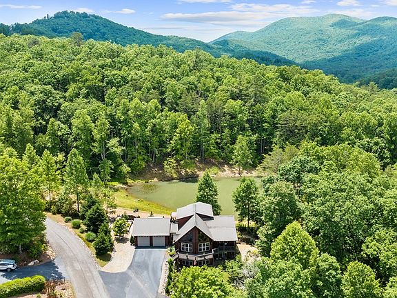 Welcome to your dream mountain retreat in the Appalachian Mountains! This stunning 5-bedroom cabin offers breathtaking views of a serene pond and majestic peaks, with no HOA. The living area features high vaulted ceilings and large windows, flooding the space with natural light. The open floor plan seamlessly connects the living room, dining area, and gourmet kitchen, perfect for entertaining or family time! The chef-inspired kitchen boasts new state-of-the-art appliances, modern quartz countertops, and ample storage. The main level includes 3 bedrooms and 2 baths, while the private primary suite on the third level features a 16-foot balcony, private bath and walk-in closet. The lower basement-level offers a separate oversized living space with a kitchenet, 2 bedrooms, and a full bathroom, making it ideal as a second private residence or in-law suite, with its own exterior entrance, driveway, and fenced yard. The private deck includes a $15,000 swim spa, perfect for relaxation. The property also features custom landscaping, a raised garden bed, fruit trees, and a covered pergola with a fire pit for outdoor gatherings. Recent updates include a new HVAC system with UV treatment and HEPA filtration (2022), a new hot water tank (2023), a 12x20 shed (2022), custom pavers (2023), a new swim spa pump (2022), all new kitchen appliances (2022-23), block rock retaining walls, and high-speed Fiber Optic internet (2020). Located just minutes from Vogel State Park, Helton Creek Falls, and the Appalachian Trail, this home offers the perfect blend of elegance and comfort. Don't miss the chance to make this mountain paradise your home.