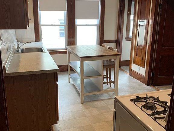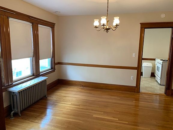 Freshly Painted! 5 room plus bonus office space! Beautiful and spacious first floor apartment with convenient location to public transportation. Gorgeous natural wood work and crown molding. Large living room with additional room which can be used as office or exercise room and opens to a spacious dining room with built in hutch. Nice eat in kitchen with pantry. 2 good size bedrooms with hardwood floors throughout. Laundry hook ups in basement plus additional storage area. Owner occupied home. Very well taken care of. Good credit a must! Immediate occupancy available.