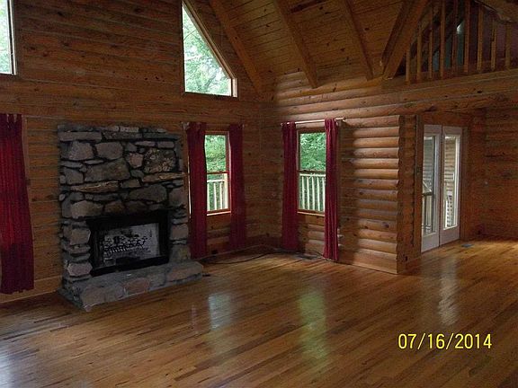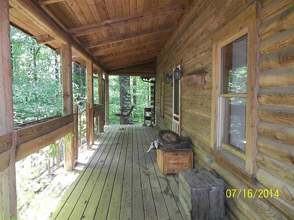 Secluded wonderful 3 Br 2 1/2 Ba True Log Home. Large kitchen. Large open great room with vaulted ceiling and fieldstone fireplace. Lake view. Hardwood floors. 2 car Detached oversized garage with bath and upstairs man cave w/ elec. Small barn with upstairs. Sit on the 38 ft front porch nd enjoy the tranquility. This home also available as a Lease/Purchase.