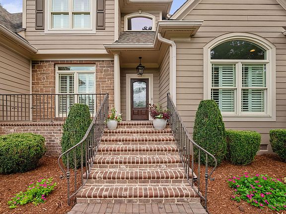 What a charmer! Beautiful cul-de-sac home on an expansive .46-acre lot overlooking Prestonwood Golf Course. Manicured lawn & an open floor plan. A striking glass-accented front door welcomes you where you'll find a private office with glass doors, built-ins and a large dining room. Steps away, the bright family room, with inviting FP and vaulted ceiling, flows into a well-equipped updated kitchen complete with new SS appliances, a spacious granite island, and a walk-in pantry. Hardwoods throughout. Iron accented staircase/walkway. Plantation shutters. The adjacent breakfast area opens to a sunroom for relaxing or entertaining. The first-floor primary suite features a generous WIC, a large bath with dual sinks & sep shower and direct access to a private patio. Convenient first-floor laundry. Spacious 2nd-floor BRs with WIC's (one with access to a large balcony), updated secondary baths, bonus room & a large walk-in attic. 2-car side-load garage plus attached garden tool storage. Come see!