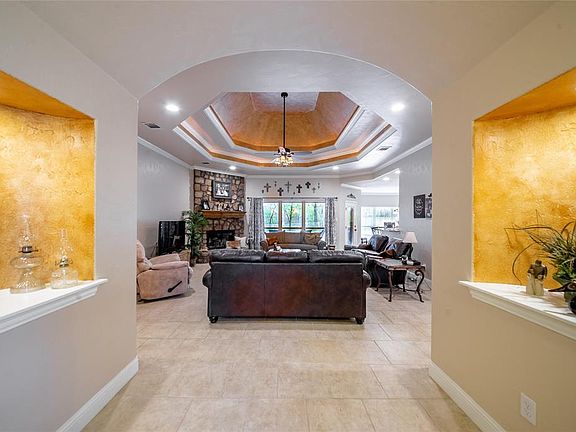 Stunning custom home on 1.76 acres! Large salt water diving pool. Outdoor fireplace. Kitchen features gorgeous granite countertops, stainless steel appliances, and breakfast bar. Master suite has tiled shower, garden tub, and separate vanities. Can access utility room from the master bedroom. Porcelain tile in formal dining. Beautiful designer features including arched ceiling in entry, trayed ceiling in living and master, art niche, and more. 2x6 construction. Tilt out windows. Sprinkler system. Small greenhouse. Walnut Creek water. Great neighborhood with no HOA. Just a really beautiful and well built house! Note that there is about a half acre at the back of the property that could be cleared and utilized.