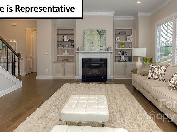 This well sought after Washington plan light and bright with windows for natural light to come in. Will have a chef's kitchen with double ovens and a gas cook top . Counter tops in the kitchen Quartz .Elaborate interior details with ample wood trim down stairs has Crown mold across the top in main living area with chair rail and picture moldings in dining area, 1st floor guest room with a full bath access . Study on main. Dining room w/coffer ceiling. Family room with fireplace with stone up to the mantel is wide open to the breakfast kitchen area with an island with a Atrium style door off the back on to the covered porch area. Laundry room down coming with laundry tub. Stairs will be open rail and will have treads no carpet. Upstairs offers large double door entry to the rec room w/closet . Primary bedroom will have a trey ceiling with a large walk in closet . The homesite backs up to trees in the Common open space located off a cul-de-sac. Along with community amenities.