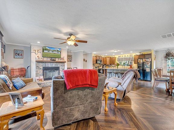 Charming one level living home with open concept on 4.07 acres. Country living at it's finest. Enjoy coffee on the covered back porch while watching the wildlife. Living room with a beautiful wood-burning stone fireplace that opens to a gorgeous kitchen with all appliances. Nice large center island and lots of cabinets that are absolutely stunning. Split bedroom design. Sizeable master bedroom with large walk in closet. Huge master bathroom offers a double vanity and a nice tub to relax in after a long day. Other two rooms are nicely sized and all have walk in closets. Mechanics will love the 24x26 detached garage with power, work bench and wood stove. Woodshed & storage building. Fenced in garden space. Come see what all this amazing home has to offer today!