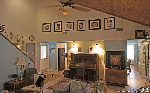 Quiet Neighborhood! Over 1/2 Acre, Corner Lot. Wonderful 3 bedroom 2 1/2 bath, High Ceilings w/Wood Treatment Living and Kitchen, decorators delight! Master Bedroom 1st Floor with full bath. 2 bedrooms up with a Jack'n Jill each side with their own 1/2 bath. Enjoy a barbecue off the back deck, in the luxury of shade trees! Fenced backyard, mature trees front & back. Carport Metal roof. KELLER MORTGAGE $0Plus Mtg - no lender fees, Buyer closing contrib. Walk to the Guadalupe River!