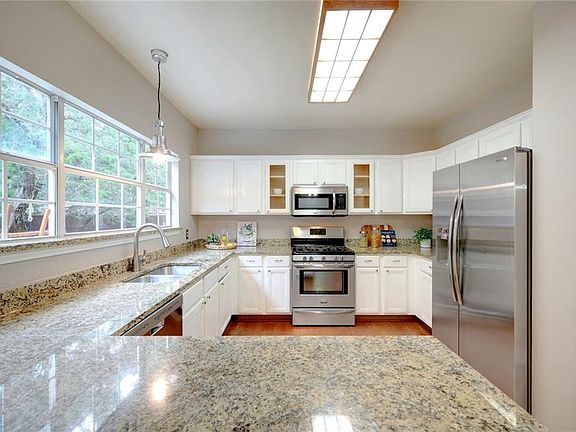 Enjoy a treed lot on private cul-de-sac with a 3 car garage and less than 1 mile away from San Gabriel Park! Lovely 3/2.5 with upstairs loft/gameroom, formal living, family room, breakfast area, and formal dining. Lots of options with this floorplan for home office, etc. Upgrades include white kitchen cabinets with granite counters open to the family room along with beautiful wood floors in the downstairs. Recent interior and exterior paint. Master bathroom updated with granite counters, tile, and frameless shower door/glass enclosure. Expanded back patio with plenty of room to entertain, privacy fence, and in-ground sprinkler system. Great location with San Gabriel Park less than 1 mile away. Enjoy the beautiful San Gabriel River, Creative Playscape, and miles of hike and bike trails winding along the river to Lake Georgetown. Easy access to IH35 and 130 tollroad.