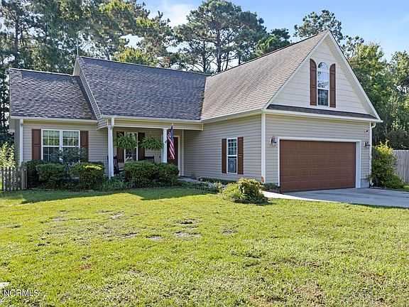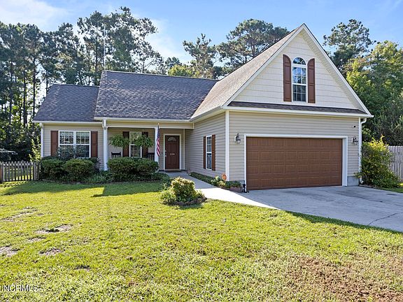 Welcome to Rita Lane! This gorgeous property features 3 bedrooms, 2 full bathrooms plus a FROG and is located in Belvedere Plantation neighborhood with 15-20 minute commute to Topsail Beaches! As you enter the property you are welcomed by the hallway leading you directly into the open living room with vaulted ceilings, a fireplace, and large TV. The kitchen includes lots of countertop and storage space with your casual dining and a small bar that is the perfect place for extra seating. Rita Lane offers a split floor plan with laminate and carpet flooring. The master suite is located just off the kitchen and laundry room and the master bathroom showcases a dual vanity, a walk-in shower, a separate tub, and a walk-in master closet. Both bedrooms on the left side of the home have their own closets and the hallway bathroom includes built-in cabinets for extra storage. On the second level of the home is a large, multi-use FROG/Bonus Room! While you are here, be sure to notice the large, fenced in backyard with an open patio and a large outdoor shed. The exterior of the home offers a long driveway to the 2-car garage, a covered front porch, and a Kinetico water softener that was just updated last year with charcoal. With it's southern charm and privacy, Rita Lane has everything you need and so much more! Schedule your private tour today!