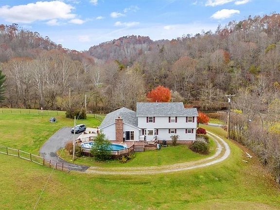 Here's your chance to have a Beautiful Home in the Country, w/ River, Tree & Field Views...all from your 48 feet of Covered Wrap Around Porch. The seller says she loves to sit on the porch & listen to the river flowing, just think of how relaxing that would be. 2.25 mostly level acres w/ an above ground pool & lots of decking, 2 stall attached & 2 stall built in garages. 3 Beds 2 full baths 26X14 Eat In Kitchen, 18X15 DR or Office, 1st Floor Laundry & Full Bath & a 24X22 Family Room w/ a Cathedral Ceiling & Gas Log Fireplace. You also have a 26X14 Rec Room in the basement w/ a Gas Log Fireplace, along with the 38X11 2 Stall Built in Garage (w/ the cars parking front to back) & a Storage Room. The 2nd floor has 3 nice size Bedrooms each with their own Walk in Closet & a 13X7 Gorgeously Updated Bathroom, you should see it. New Roof, New HVAC, Newer Appliances & so much more. This really is one you will want to see.