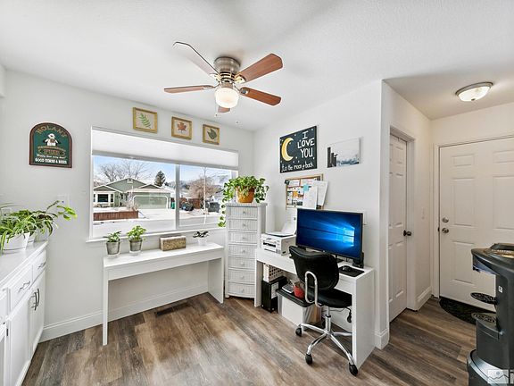 Well maintained, move in ready home in a quiet neighborhood. Recent upgrades include: quartz countertops, freshly painted kitchen cabinetry, luxury vinyl plank flooring, interior window treatments, baseboards, ceiling fans and light fixtures, interior paint, water heater, insulated garage door, and newer furnace and air conditioning unit. New grass in both front and rear; backyard is completely fenced, with lots of birch trees. Full sprinklers front and back with front drip system for plants., Great sized lot with RV access and parking; plenty of room for a swing set or garden on the sunny South side. Sunsets from the kitchen sink and Eastern exposure from the primary bedroom. Great small town on the Carson River with coffee shops, cafes, grocery stores, and casinos. Walking distance to Dayton schools and the library. Dog park, golf course, shops, restaurants nearby and easy access to Virginia City, Lahontan Reservoir camping,boating, and beaches. 20 minutes to Carson City amenities.