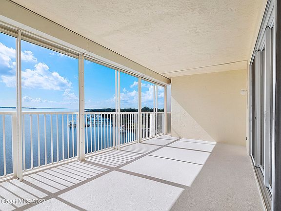 Resort Style Living at riverfront condos of Oleander Pointe. Experience panoramic views of the Indian River from your balcony. Whether it's the spectacular sunrise, frolicking dolphins or holiday boat parades; you always have a front row seat. Open floor plan maximizes water views & natural light. Laminate wood flooring throughout living areas & tile in wet areas. Primary Bedroom features water views, walk-in closet, dual vanities, separate shower & jetted tub. Laundry in unit, electric hurricane shutters, private garage. Nearby Cocoa Village for restaurants, shopping & entertainment. Amenities: pool, spa, riverside boardwalk, fitness center, sauna, tennis/basketball/pickleball courts, club room w/ pool table, library & kitchen. Active community w/ regular events