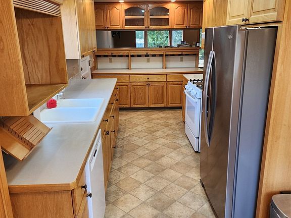 Are you ready to move in? 3 bedrooms on the main. A primary ensuite with a full bath for the other 2 bedrooms. The kitchen has an amazing set of cabinets and newer appliances. The refrigerator is a 2023 model. There is also a breakfast nook for morning coffee. Large open living room dinnig room combo. Main floor laundry. High efficiency Quadrafire wood stove. A fire place in the lower Family Room. New exterior paint, new solid suface flooring, newer windows, roof (2021), Hot water heater (2021), furnace, and water softener. The HE/SHE Cave is a detached concrete floored, heated and finished 19' X 23' stand alone building. A garden with it's own sprinkler system, an oversized shed and a driveway big enough for toys. There is central A/C and underground sprinklers. Call Ron Dodd at 406-799-2829 or your real estate professional.