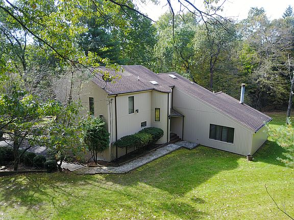 Dramatic and spacious Contemporary offering 4BR 2/2Baths and over 3200 s.f. on 96 acre in prime location! Sunny and light open floor plan with generous sized rooms. Eat-in kitchen with breakfast nook, island, newer wall oven and microwave. Family room with gas fireplace, vaulted ceiling and door to deck. Dining room with vaulted ceiling and balcony. Living room with vaulted ceiling, 2 interior balconies and cat walk. Main level master with full bath and walk in closet. Upstairs you'll find 3 additional bedrooms, full bath with skylight and closet space galore! Updates include: new vinyl siding (2013), new furnace (2016) and new water heater (2016). Wired for generator and includes Honda 7000kw generator and 40 ft cable. Extra fridge (as-is) in garage included. Heat pump system runs on electric or propane (your choice). Very efficient system, average monthly electric bill is $100, propane is $110. New well installed 2014. 3 car garage includes tandem garage and a single garage. Home is in excellent condition, seller prefers to sell as-is - will address any health or safety issues. Room for pool. Hardwood floors have been recently refinished. Interior freshly painted. Fabulous property that you'll love to call home!