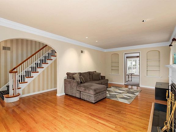 NEW PRICE at this 3 bed, 2.5 bath brick colonial with all the classic details you expect PLUS a lovely addition of a breakfast room and family room across the back, making it the perfect place to live and enjoy entertaining your family and friends! Great center hall floor plan where the living room has a fireplace and the dining room has a box bay window. Kitchen with a center island, custom cabinets, s/s appliances, and granite tops flows into the breakfast room and family room with 2nd fireplace. The door from the breakfast room leads to an aggregate patio in the yard. A half-bath completes the main level. The second level has the primary bedroom with en-suite bath and walk-in closet with custom organizers. Two more bedrooms, one with a French door to a private balcony overlooking the backyard, hall bath, and cedar closet round out the upstairs. Partially finished, walk-up lower level has rec space with 3rd fireplace and bar, laundry, and plenty of storage. Don't miss this one!