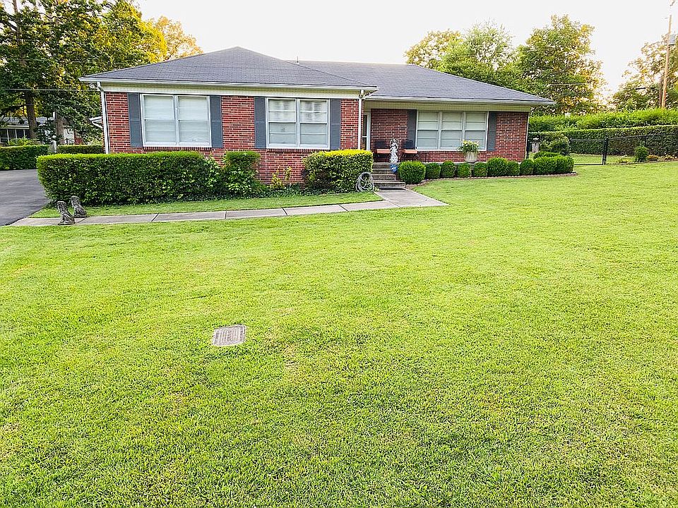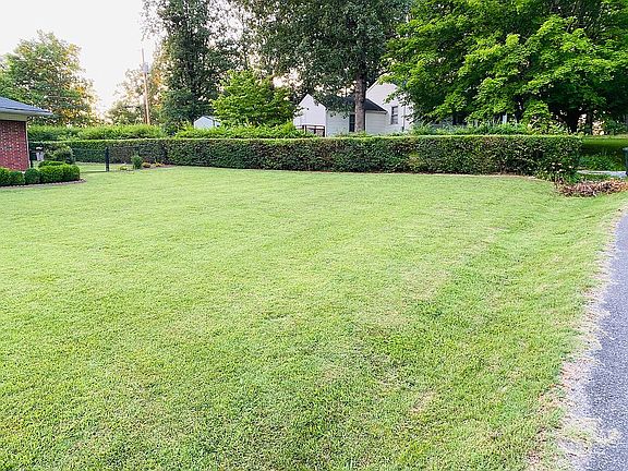 Traditional brick with paved driveway. Large garage with additional work shop. Outside attachment metal storage shed with gravel floor for lawnmower and garden tools. Hedged and fenced on three sides. Large cement front porch with partial roof covering. Cement steps and walkway.