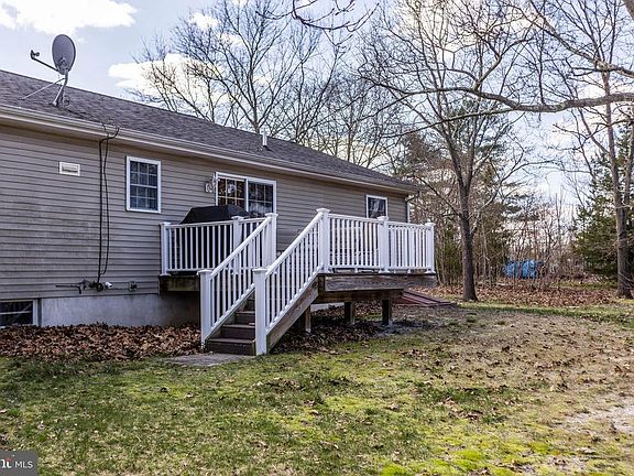 Nestled on over an acre of mostly cleared, flat lawn with just enough trees for comfort, sits this charming one story home. The large, open concept, living space features beautiful eucalyptus flooring throughout the living area, kitchen and dining room. The kitchen has lots of storage space and is complimented by stainless steel appliances, recessed lighting and a gas range for the best cooking experience possible. Relax after a hard day at work in your private soaking tub located in the master bathroom. Included in this home are custom blinds for all windows. For the car guy, or girl, this home features a 2 car attached garage with a pull-down staircase to access the large attic storage. Step through the slider to your rear "Trex" style deck and enjoy the soft sounds of nature all around. The enormous full basement, with lots of head room, has inside as well as outside access making it very convenient to utilize. There is an office space that can be used as a legal 4th bedroom with an egress window and it's own closet. Seller will be swapping out the electronic door locks and smart thermostats with standard units before closing.