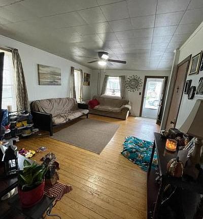 3 bedroom, 2 bath single home with oversized detached one car garage. There is a 2 story addition that adds a lot of space to this home. The first floor addition adds either a family room or master bedroom with french doors to backyard. This also includes a walk-in closet and a partial bath with a shower and sink. The toilet is in the adjoining mud/laundry room. Living room has wood floors. The 2nd floor has some exposed original wood floors. The second floor addition has a huge bedroom. A second bedroom & a small walk-through bedroom that would make a great nursery or office completes the 2nd floor. There is a small porch in the back and a cute yard. The garage has electric, but does not have a electric garage door opener.