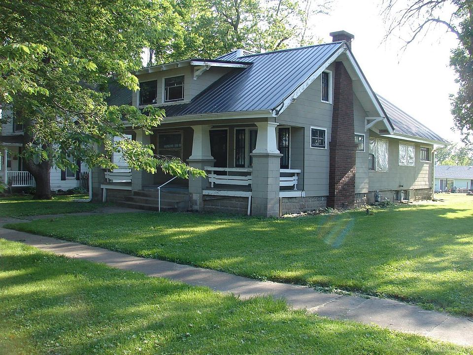 ENJOY SMALL TOWN LIVING WITH THIS AFFORDABLE BUNGALOW STYLE HOME!! The home offers 3 bedrooms, nicely remodeled bath, formal dining & living room areas, original wood columns & built-ins, original wood floors, all offering tons of charm & character. Newer metal roof, nice front porch, basement, and also detached one car garage. CHECK IT OUT SOON!!