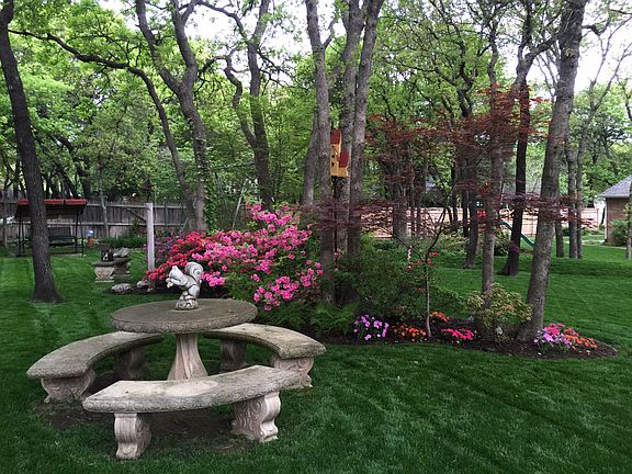 Well maintained one-owner custom home on park-like heavily wooded corner lot. Close I-35 access in popular Bradbury Corner addition. 2 living, 2 dining, granite countertops and Italian porcelain tile in kitchen and baths, double oven, 2 fireplaces, 4 bedrooms (master down), 2.5 baths, wood blinds throughout, custom drapes in formal living and dining. Built-in window seat/bookcase combo in upstairs bedroom.
