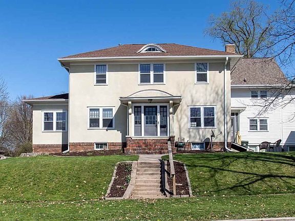 Perched above Governor Street, this enchanting home invites you to experience the blend of Colonial Revival charm on the exterior and surprising Craftsman intricacies within. Dating back to the 1920s, this distinguished residence, recipient of the 2009 Historic Preservation Award, boasts an ideal location just a stroll away from downtown, Longfellow Elementary, retail therapy destinations, the library, and the University campus. Lovingly updated in all the right places, this abode offers a modern kitchen adorned with quartz, bar height seating, eat in kitchen and gleaming stainless-steel appliances. Revel in the renovated bathrooms, including a new walk-in shower on the main level and restored details in the upper bath. Original oak hardwood floors grace the interiors, complemented by a brick fireplace in the living room and abundant windows that frame picturesque views of Old Capitol and the charming neighborhood. Find solace in the screened porch or bask in the sunlight streaming through the library/office adjoining the living room. Retreat upstairs to discover three generously sized bedrooms, with the primary bedroom offering potential for an ensuite. Convenience meets modern living with two bathrooms — one on each floor — while the basement provides additional space for a workout area or storage. Parking is a breeze with the secure off-street garage, featuring half a stall of additional storage space on either side of the car. Explore the attached documents for a detailed list of updates and amenities, and seize the opportunity to schedule a viewing of this Longfellow/College Hill residence today. Discover the charm and uniqueness awaiting you.