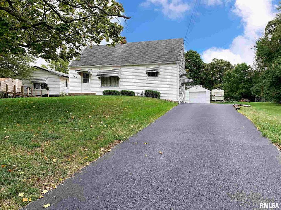 So affordable on quiet dead end street. 2 BR w/possible 3 B R up, just needing drywall taped & painted & flooring. (Would add 245 sf). LR has laminate floor, kit has newer SS appliances & laminate floor. BR 1 & 2 on main floor. Updated bath w/walk-in shower, new vanity & floor. Extra lot for large yard & 1 car garage w/openers. Unfinished basement w/washer & dryer. Furnace & air 2-3 years old. Freezer in basement stays.
