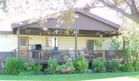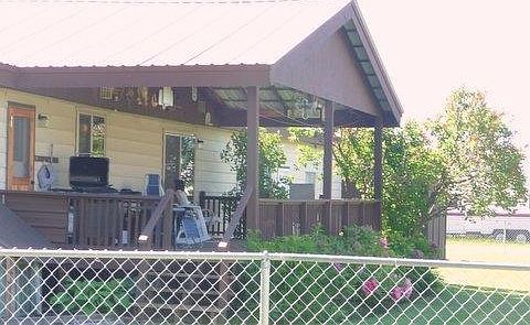 Pretty Pkg. Priced to Sell! Well-kept manu. home has sunny front deck, lg covered back deck, beautifully landsc. and fenced yard with sprinkler sys. Terrific floor plan, on-demand water, new faucets, great lighting, and rollout kit. drawers = nice features. Patio shades offer privacy and summer comfort; paved drive rolls into two car garage with extra open bay for rec. vehicle. Don''t Miss This One!