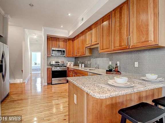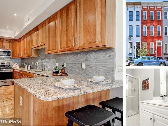 Modern & Spacious 4 level, 3BR / 3BA Butchers Hill renovation w/ new gourmet kitchen & panoramic city views from roof top deck! Enjoy HW floors, fresh paint job, open floor plan, fireplace, new SS appliances & cherry cabinets in kitchen, spa like master bath, walk in closets, great courtyard & huge basement w/ plenty of storage. Easily walk to waterfront & Hopkins! Enjoy unique 1st floor BR suite!