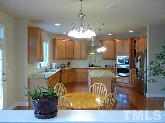 A must-see, like new, all-brick house (expanded Duke Charleston model) by Toll Brothers. In center of the Raleigh-Durham-Chapel Hill area, convenient to shopping, working and schools. Hardwood floor throughout main floor. Large two-story foyer and family room. Spacious kitchen with center island, granite counter tops. Top-down/bottom-up blinds for windows. Security system. Two cable outlets. Audio system with four installed speakers. Ceiling fans. Close to amenities. Access to American Tobacco Trail.