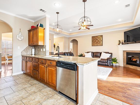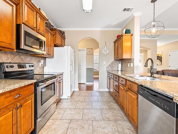 Spacious and Impressive Open Floor Plan! The primary suite is privately located, separate from the other bedrooms. This charming home features 4 bedrooms, including the primary on the main level, with a large bonus room above the garage as the 4th bedroom. The primary bath has been beautifully updated this year with a new tiled shower that perfectly matches the flooring and tub surround. Enjoy the expansive concrete extension of the back porch that was also extended recently, ideal for outdoor relaxation. Don’t miss the opportunity to explore this home, with access to a golf course, pool, pickleball courts, clubhouse including popular new restaurant and more right in the neighborhood!