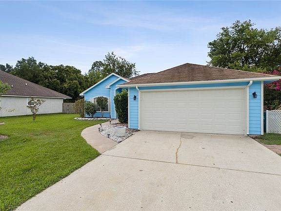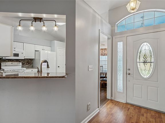 Welcome to Sugarmill- Mill Creek! This 3/2 1578 sqft home is ready for move in. The home was recently painted on the exterior, roof is 2018 est., fence is 2yrs and the AC was just serviced. This home is a somewhat open split floor plan. The kitchen is separated from the living room with a wall adorned with architectural lines, shelving and a serving widow/bar. The Primary bedroom offers a dual vanity ensuite, tiled shower and walk in closet. The backyard provides a screened in back patio and a fenced yard. The community amenities include a pool, playground, picnic area and tennis courts that over look the pond and sidewalks that are canopied by oaks and greenery.