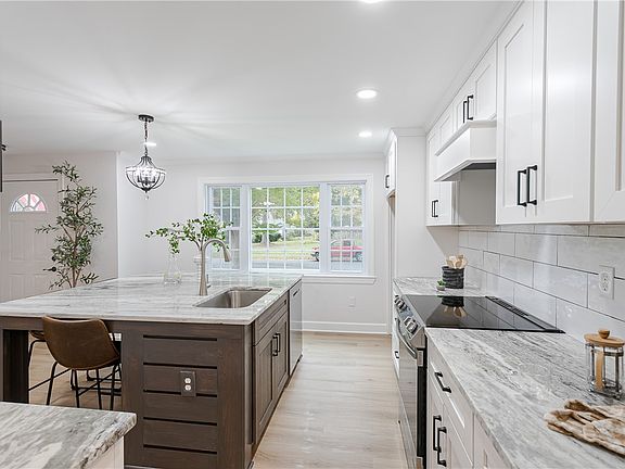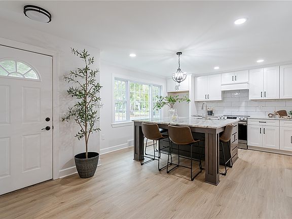 Absolutely Stunning ! Much Larger than it Appears ! Beautiful Open First Floor ! Kitchen boasts a uniquely designed island w/ electric & ample room for Stools . Stainless Steel Appliances - Granite with neutral grain - Tiled backsplash . The White cabinetry has an upgraded trim . The entire first floor has a designer LUXURY Laminate ! BUT what absolutely takes this home 'over the top ' is the OVERSIZED new