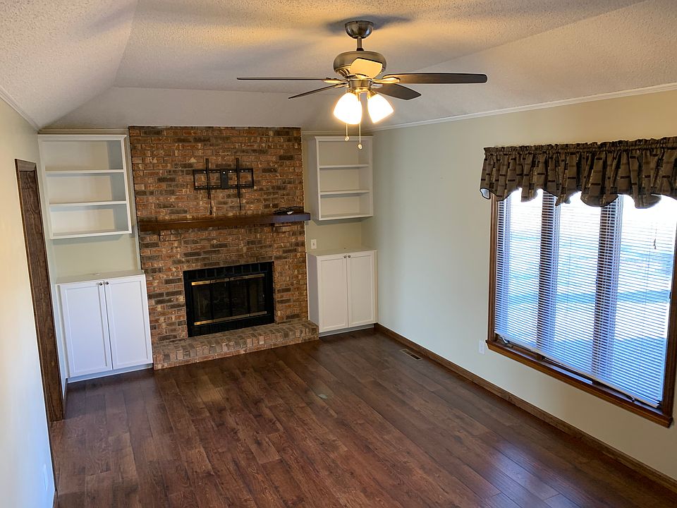- Ceiling Fan(s), Kitchen Island, Custom Cabinets