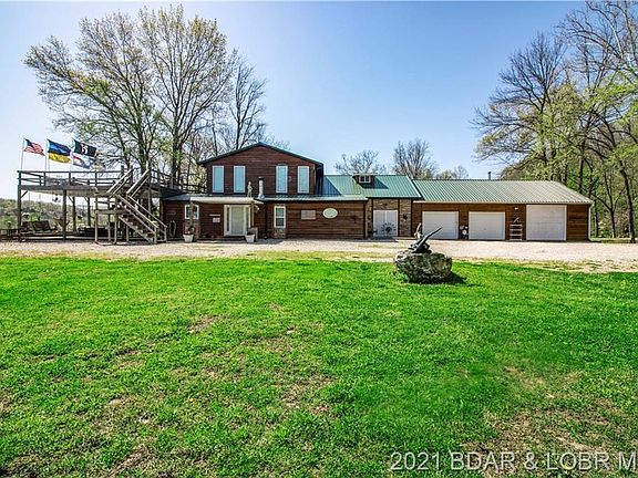 INCREDIBLE RIVER PROPERTY located just a couple miles from Lake Ozark! Over 800 feet frontage along the Osage River sitting on 6.5 acres, just east of Osage National Golf Course. Beautiful 4 bedroom and 3 bath home featuring about 3000 square feet of living area. Many beautiful upgrades in home, including 1850 Rosewood Piano serving as kitchen island, large great room with 10' ceilings, copper handrails, oversized Master Suite overlooking river, rock flooring in kitchen and and dining area, Faux Tin ceiling, upper and lower decks, and beautiful hand crafted back bar. Two car garage with attached workshop that could be used as third garage along with 2 storage sheds. Two guest cabins with separate shower house and bathroom. Plenty of river frontage to add more cabins. Boat dock, boat launch, Stonehenge firepit, large fish stocked pond and frontage along Blue Springs Creek are added value to this property. Very few property like this one and none at this price!! See it TODAY!!
