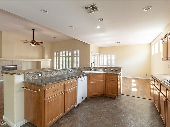 Beautiful Open Floor Plan, 2 Bedroom Home with Den/Office, in idyllic N. Summerlin gated community. Den could be converted to 3rd Bedroom. Large Kitchen with Granite Countertops, Breakfast Bar, Dining Nook, Recessed Lighting, Extensive Cabinetry, Computer Desk, Double Ovens and Walk-in Pantry. Enjoy intimate conversations with Family and Guests in inviting Family Room enhanced with Plantation Shutters, Entertainment Niche and Fireplace. Primary Bedroom has lots of natural lighting, small Entertainment Niche, and cooling Ceiling Fan. Primary Bathroom has Dual Sinks, Separate Tub and Shower, Vanity Area and Walk-in-Closet. Exquisite Rear Yard with Planters, Natural Grass, Red Tile Patio Deck, Covered Patio and Trees that offer great shading to enjoy a relaxing afternoon in popular Belvedere.
