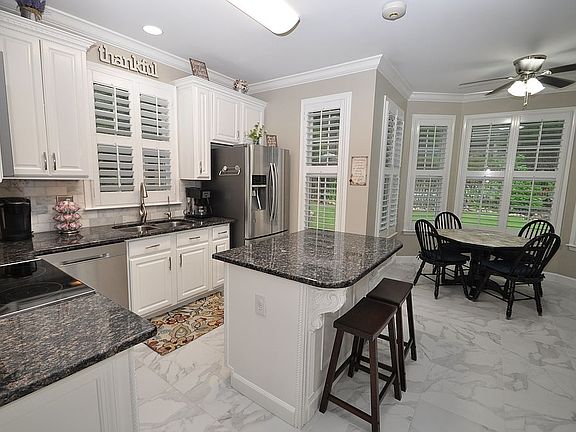 - Jetted Tub, Breakfast Bar, Kitchen Island, Pantry, Security System, Linen Closet, Walk-In Closet(s), Separate Shower, Stone Counters, Eat-in Kitchen, Crown Molding, Split Bedroom, Tub/Shower Combo, Smooth Ceilings, 9 Feet +, Separate Vanities