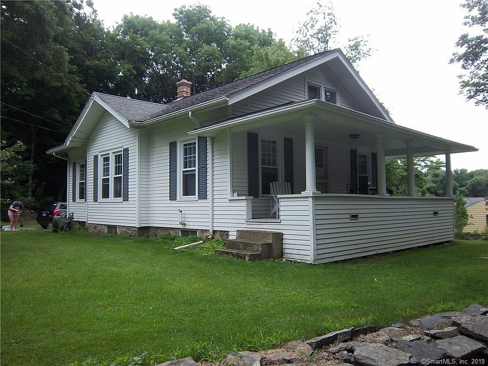 Charming 2 bedroom, 1 full bath ranch/bungalow style home in very nice condition. Eat in kitchen, dining room and living room with hardwood floors. 2 cozy bedrooms with limited closet space. Nice covered front porch. Full unfinished basement with washer and dryer hookups. Walk up attic storage. Tenant responsible for all utilities, minimum year lease, application required. Very small adult fixed dog of a non aggressive nature considered.
