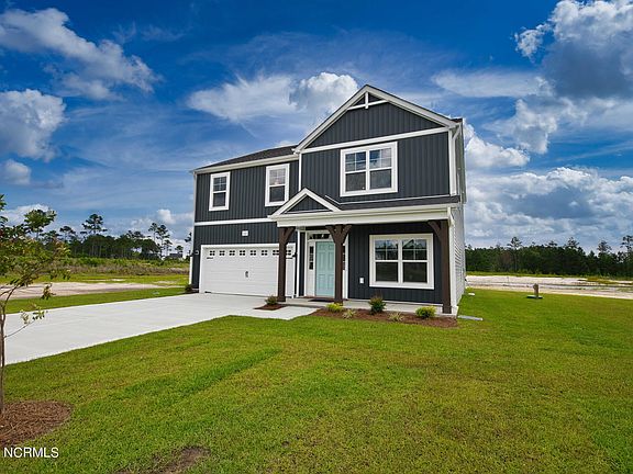 Welcome to the Magnolia floorplan, Elevation FH, in Sneads Ferry's most sought after neighborhood, Oyster Landing! This stunning energy efficient home, built by a US Top 100 Builder, Caviness & Cates offers an exclusive home warranty. The welcoming foyer adjoins a convenient flex room, in addition to a formal dining room which features upgrades such as coffered ceilings and wainscoting. With plenty of cabinet and countertop space, you'll enjoy the practicality of the kitchen island, walk-in pantry, and powder room. Blanketed by natural sunlight and centered with a fireplace, the living room offers a cozy retreat. Upstairs features a large loft space, roomy laundry room, three additional bedrooms, and full bathroom. The Master Bedroom features a large walk-in closet and a spa-like Master Bathroom complete with a walk-in shower, dual sink vanity, and water closet. Close to area shopping, dining, entertainment and located near Marine Corps base Camp Lejeune, MCAS New River, Stone Bay and Courthouse Bay. Call today for your personal showing! NOTE: Floor plan renderings and photos are similar and solely representational. Measurements, elevations, and design features, among other things may vary in the final construction. Call to verify.