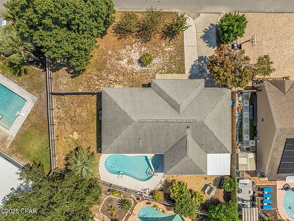 Nestled in the sought after Seaclusion Beach, Bid A Wee Beach Park Neighborhood, this 2 bed, 2 bath ranch home with a pool, is the perfect getaway on the Western Side of Panama City Beach. This home is ''Certified Pre Owned''- it has had a full pre list inspection, has been very well cared for, is move in ready, and priced well to factor in future cosmetic updates. Large primary bedroom with en suite bathroom and walk in closet. Secondary oversized bedroom can be converted to a separate 2nd and 3rd bedroom. Spacious kitchen with eat in breakfast nook, overlooking the large dining room area and living room. Enclosed sunroom, covered back patio and loveseat swing are a beautiful addition for entertaining. Oversized, deep 1 car garage equipped with workbenches, shelving and washout sink. Private, fenced in backyard with pool, finishes off this wonderful oasis. Home has a current and clean termite bond, making this a worry free, move in ready home. Voluntary HOA includes private beach access in this golf cart friendly community. Just minutes from Pier Park, open-air shopping, vibrant attractions, boutiques, dining and more. Schedule your showing today and make this your ultimate coastal beach retreat.