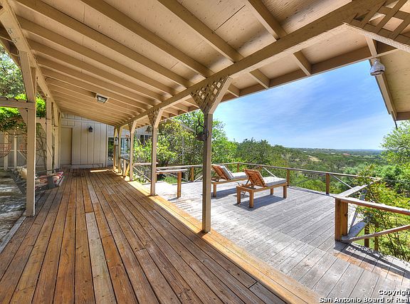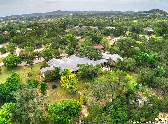 ATOP A QUIET HILL, LOVELY HOME OR POSSIBLY A B&B! 4 BEDS, 3.5 BATHS IN MAIN HOUSE, 2 GUEST HOUSES & EFFICIENCY CABIN EACH W/FULL BATH. 2-CAR GAR & 4 CAR COVD. PKG. LG MUELLER SHOP, GREENHOUSE, UTIL W/TUB SINKS, OVERSIZED COURTYARD & DECKS OVERLOOKING HILL COUNTRY'S GUADALUPE RIVER VALLEY. 3' ROCK WALL W/UNIQUE MEXICAN CARVINGS SURROUND 6 ACRES W/2 WATER WELLS. 45 MIN. FROM 40 WINERIES.
