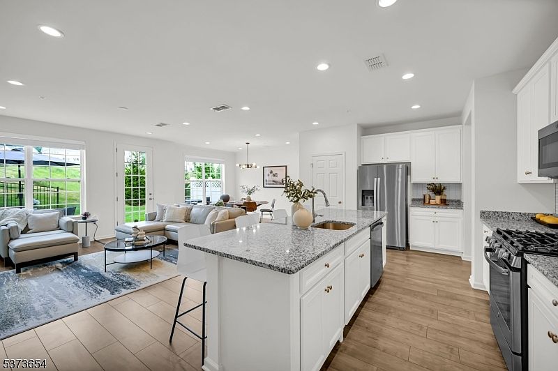 Welcome to this stunning two-story Norfolk model located in the desirable Hilltop at Cedar Grove community. This spacious 2-bedroom, 3 full bath condo offers a modern, open-concept layout designed for both comfort and style. The beautifully appointed kitchen features stainless steel appliances, granite countertops, a breakfast bar, pantry, and rich cabinetry perfect for entertaining or everyday living. The living and dining areas are flooded with natural light, thanks to oversized windows, and seamlessly extend to your private patio overlooking peaceful fountain views an ideal spot to relax or enjoy your morning coffee. Down the hallway, you'll find multiple storage closets and convenient access to your attached one-car garage. Upstairs, the luxurious primary suite includes an ensuite bath with dual sinks, a walk-in shower, linen closet, and a spacious walk-in closet. The second bedroom is generously sized with easy access to the third full bathroom. A dedicated laundry area completes the upper level, adding to the home's functionality. Low taxes and HOA fees!! Enjoy maintenance-free living in a resort-style community offering a clubhouse, outdoor pool, fitness center, and shuttle to the Upper Montclair train station. Just 9 miles from NYC, The Hilltop offers the perfect blend of suburban tranquility and urban convenience.