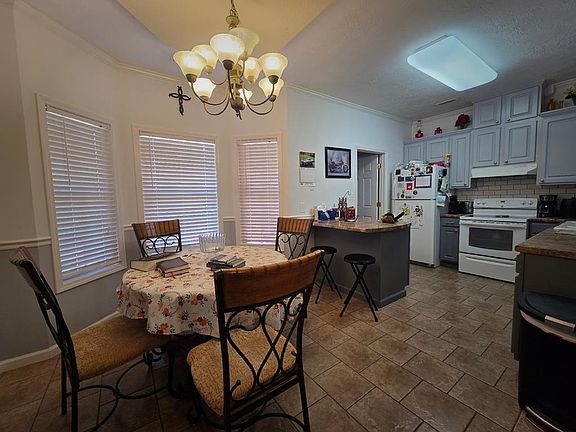 This three-bedroom, two-bathroom residence offers a well-designed split floor plan, maximizing space and functionality. The living area and master suite are notably spacious. The master bathroom features an extended double-sink vanity and dual walk-in closets. The living room's vaulted ceiling has been enhanced with natural wood shiplap siding, complementing the ceramic tile flooring found throughout most of the home. Additional features include a double-wide driveway with a metal carport, leading to a two-car garage. Tbrough the back exterior door is a a metal-covered patio and a storage/workshop in the back yard. Don't wait, call today and schedule a walk-through!