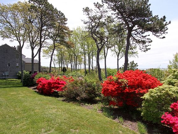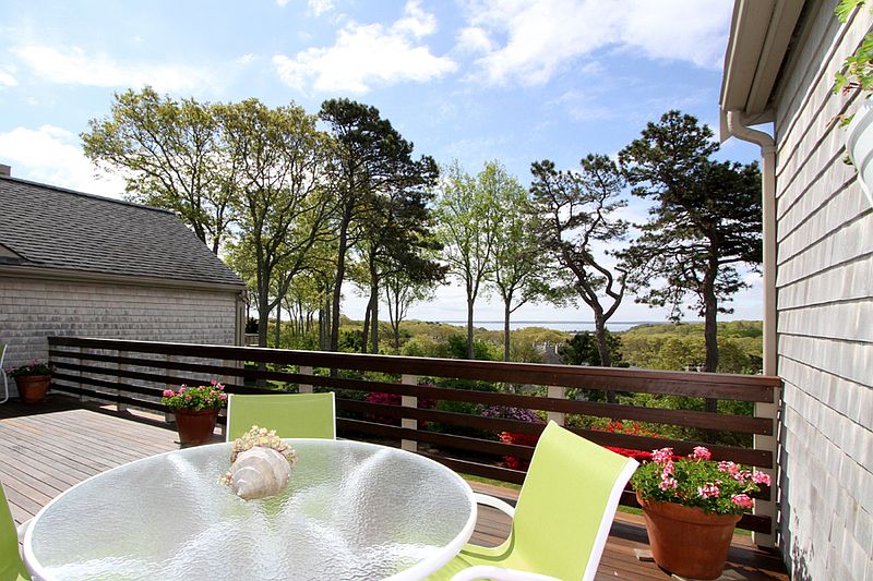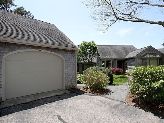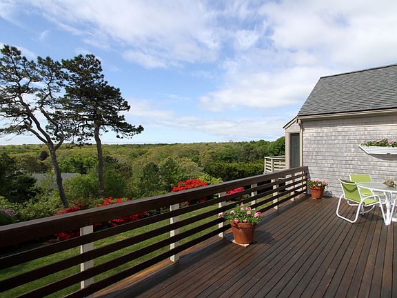 Spectacular views across Vineyard Sound. Sleek and sophisticated designer inspired Ranch-style condominium in Treetops is awaiting a new owner. This outstanding south-facing home has had numerous upgrades. The open floor plan has soaring cathedral ceilings in the living and dining area, with recessed lighting, fireplace and white oak flooring. There are three sets of sliders out to the private and spacious water view deck. The renovated kitchen has granite counters, stainless steel appliances, and a breakfast nook with a bay window. The grand master bedroom suite opens onto the deck, has ocean views, oak flooring, and a private bath. The unfinished walk-out lower level has two sets of sliders. A one-car detached garage is included. Treetops amenities include the heated pool, tennis courts, kayak dock, deeded beach rights and clubhouse.