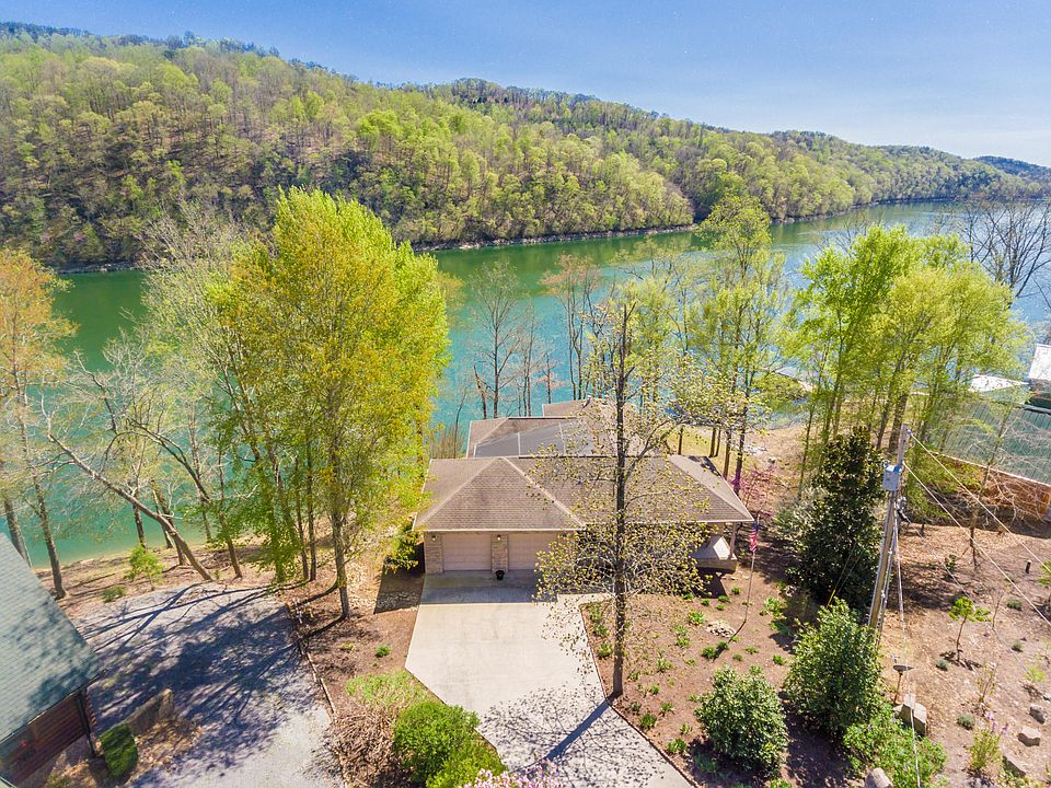 All brick lakefront home on the main channel of Norris lake. Year round deep water and breathtaking waterfront views. This home is located on a private lot in the lake front community of Lone Mountain Shores. Open floor plan with the master bedroom on the main level. Additional living quarters downstairs with a second kitchen and living room. Back doors walkout to a covered back deck with views of Norris lake. .34 acres and a dock already on the property. This home is move in ready and priced to leave room for you to put your personal touch with upgrades while making it your own. Stainless steel appliances convey.