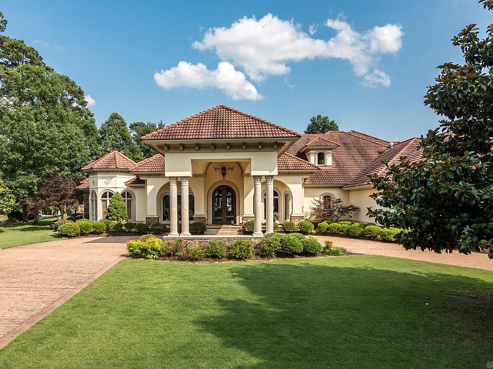 The private, gated entrance of Sologne introduces the superb tone of this Mediterranean estate on over an acre in this enclave of Chenal’s most important homes. Achieving an ideal balance of scale, symmetry and grandiosity, this custom-built estate is a work of art. Effortlessly blending Mediterranean influences and craftsmanship with modern style, its unique aesthetic impresses at every turn. Statement details come from the Seller’s extensive travels include chandeliers from Prague, carved marble fireplaces, exotic onyx, and marble from around the world. While the home boast over 6332 square feet, over 5000 square feet is on the main level. The main level features the: foyer, formal dining, formal great room, study, two powder bath, owners’ suite, kitchen, informal dining, wet bar, informal great room, wine room and two additional bedroom suites. The upstairs features a bedroom suite and flex space for a game room, wrapping area or a fifth bedroom and bath. The impressive 1.15 acre “park like” grounds feature a fabulous fountain, covered and uncovered terraces, all overlooking the professionally landscaped grounds, encased on all sides by a rock and iron wall. APPTS REQUIRED