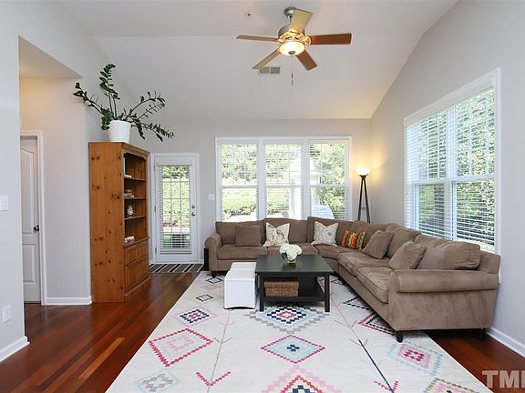 Beautiful standalone end unit townhome in West Vineyard Sq. no shared walls! Lots of nat light w/vaulted ceilings & arched drwys. 1st flr mst BR & bath, lg BRs up w/ walk-in storage & attic. Hdwds, tile & carpet, Qtz counters, 42" cabinets, new stainless D/W, mwave, fridge, plantation shutters. Close to UNC, Duke, I-40, RTP & great schools, stone's throw to Car. North to access miles of hike & bike trails. 2 car gar & ext storage. Sprinkler system inside, wired for 911. These don't come up often.