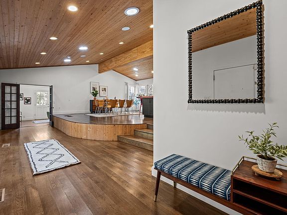 Mid-Century Modern Retreat in the Heart of Carrboro Quintessentially Carrboro, this home built in 1962, is a true mid-century gem, tucked away for privacy yet just minutes from the Carrboro Farmers Market, Chapel Hill, and numerous nature trails. Surrounded by mature trees and nestled in a community-oriented neighborhood, the property blends architectural character with thoughtful updates. There's nothing else like it. Inside you'll find soaring beadboard cathedral ceilings, a dramatic curved dining room, and a flexible floor plan. The chef's kitchen features Thermador appliances, including a refrigerator, a 6-burner gas range, and double dishwashers. There's a sunlit room on this floor with a separate entry, which could serve as a lovely study, sunroom or yoga space. A few steps up from the main living area, you'll find the primary bedroom suite with built-ins, a huge walk-in closet, and a sizeable bath with separate standalone tub and shower. Two more bedrooms are on this floor, sharing a recently updated bathroom. A few steps down from the main floor, you'll find a cozy family room with a wood-burning fireplace and built-in shelves. There's another renovated bath on this floor, laundry room, bedroom #4 and another room that could serve as a office, craft room or artist's space. The front and back yards are both large! Plenty of room to roam. There's a huge covered front porch, a slate walkway, a rear brick patio with an arbor, and a brand-new roof (as of 2023). The added bonus - an income generating apartment! Above the detached two-car garage includes a beautifully renovated apartment with its own private deck and private yard. It's ideal for guests, work-from-home, or income earning. One bedroom, full bath, plus living room. It's ready to go - all appliances convey including fridge and washer/dryer. Recently leased through Airbnb, it has earning potential of $2,600-$3,200 per month. Long term furnished rental rates are approximately $2200/month. Additional Features: Tankless on-demand hot water in the main house Built in speaker system Whole house vacuum Unfinished basement for storage or future expansion Tucked away from the road, on 0.69 acres, this one-of-a-kind property combines mid-century style with income potential - all in one of Carrboro's most sought-after locations.