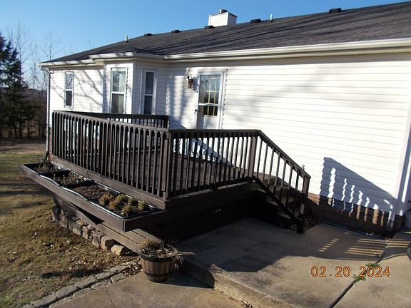 Great location. Very neat and clean home very well kept. Gas log fireplace in liv.rm. Cathedral ceiling in liv.rm. Lots of kitchen cabinets and counter top space. Over sized kitchen sink with pot filler faucet. Under cabinet lighting. Stove, fridge, and washer dryer all to remain. Several cabinets in utility rm. to store all your items. Large covered front porch runs the full length of the home. Wooden deck out back for cookouts. Full concrete drive. Nice stone tiled area out back for fire pit or hot tub. Big back yard for the kids and dogs to run and play. 2 car car port plus 32x40 detached garage/work shop with electric and water. NOTICE- Sellers have contracted the entire concrete floor in garage to be removed and replaced with a brand new concrete slab. That work is estimated to be completed by May 10. Closing date would have to take that into consideration.