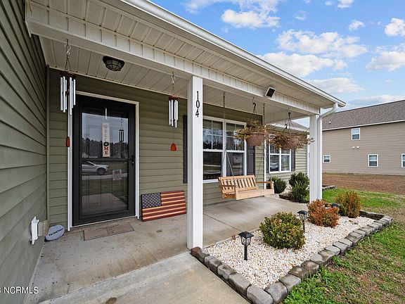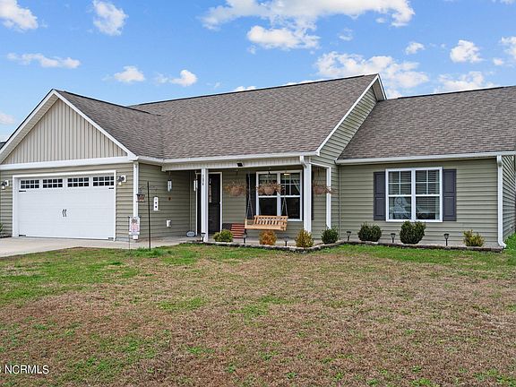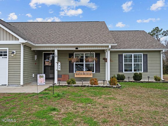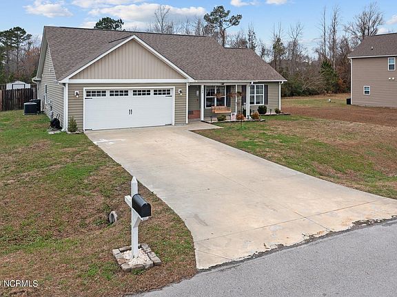 This gorgeous home is move in ready, and looking for new owners! When you pull up, you're greeted by a cozy covered front porch. When you enter the home, you'll find an open concept living space, with low maintenance LVP flooring. The living room is spacious, and flows into the kitchen and dining area. The kitchen features a bar top for stools, to keep the chef company while they're in the kitchen, as well as a single basin sink, stainless appliances, and coordinating backsplash. The dining space boasts chair rail and comfortably fits a dining room table. The bedrooms in the home are split, with the master suite nestled on the right side of the home. It's spacious, with enough room to easily fit a king size bed. The private master bathroom features a linen closet, double vanity, and large walk-in closet. On the left side of the home, you'll find three additional bedrooms and a second full bathroom, boasting a large double vanity. If you love being outdoors, then you'll love this back yard! The property has 0.71 acres, much of which is fenced in with wood privacy fencing. There is a a covered back porch, and stone areas featuring a firepit, picnic table, and dog house. For additional back yard storage, there's also a shed. The location of this home is in a small community, and is convenient to all of the businesses on Piney Green Road, the center of Jacksonville, and Camp Lejeune. Schedule your private tour today!