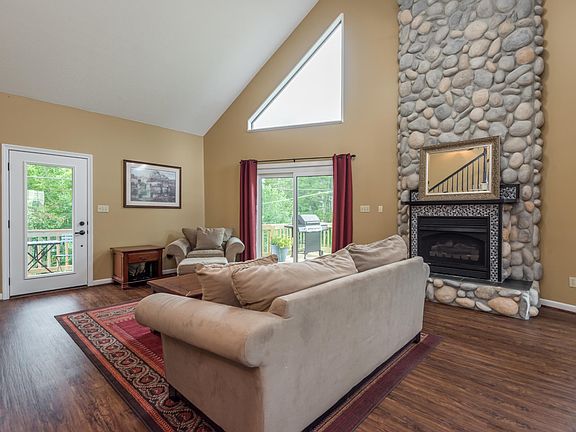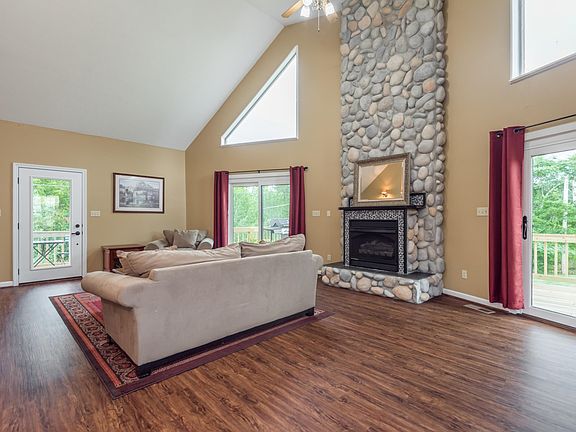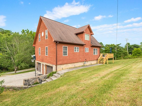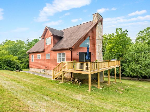 Beautiful chalet style home offers great room w/vaulted ceiling & stone FP, abundance of cabinetry & breakfast bar in kitchen that is open to dining room & great room. NEW PLANK LV flooring in kitchen, great rm, hallway, full hall BA & laundry room. 2 Bedrooms on main level with NEW carpeting. Main level laundry room. HUGE master bedroom with sitting area & master BA w/soaking tub & shower. Rec room in basement w/half BA & oversized 2 car garage. 3 NEW patio doors, NEW gutters, newer HVAC. NEW wrap-around deck is wonderful for entertaining & enjoying the outdoors. & enjoying the outdoors. Country setting & just minutes from Oak Ridge, Kingston, Lenoir City & west Knoxville. YOU WILL LOVE THIS HOUSE, MAKE IT YOUR HOME!!! Basketball goal does not remain.