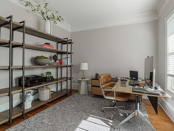 - RoomLivingRoomFeatures: High Ceilings, Floors-Hardwood, Molding